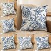 Navy Blue Delft Blue Toile De Jouy Pattern Design Royal Elegant Home Decorative Sofa Throw Pillowcase Cotton Linen Cushion Cover