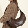 Casual pleated first layer cowhide shoulder dumpling bag women's leather commuter senior sense croissant