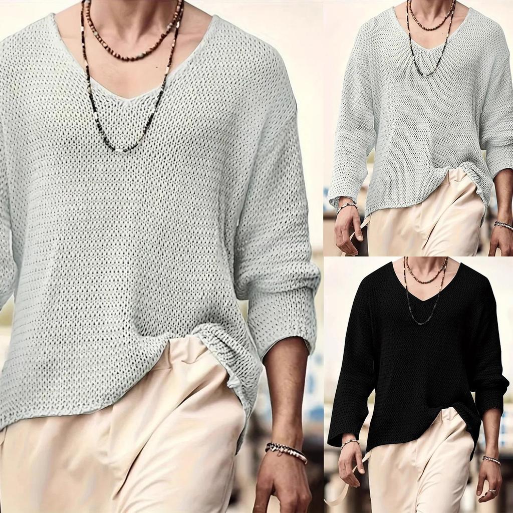 Men's Casual Loose Knitted Pullover Hollow-out Long-sleeves Sweater