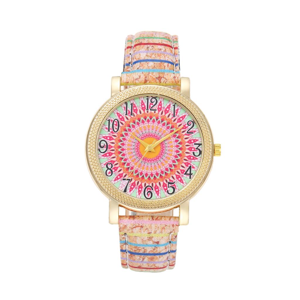 New women's watches student wrist watches wood grain turntable retro stripe leather strap ethnic style watches