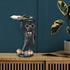 Cartoon Cat Key Storage Tray Resin Standing Cat Figurine Statue with Tray Multi-purpose Jewelry