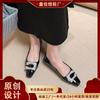 Grape mother Studiolee square head rhinestone shallow mouth square buckle silk retro temperament flat shoes single shoes women's spring and summer