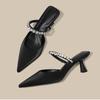 Fashion 20525 New Women's Fashion Shoes High Heel Pointed Back Vacant Woolen Shoes Water Embellished Slippers Rubber Outsole