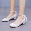 Fashion Rear Rbbion Bow High Heels Woman Ankle Pearl Beading Sandals 2025 Square Toe Pumps Ladies Office Dress Mary Janes Wedges Tacones