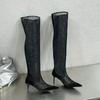 Fashion Female Pointed Toe Women Over the Knee Boots With Thin Heels Shoes Fashion Mesh Breathable Ladies Long Booties Zippers Shoes