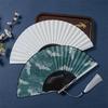 Vintage China-Chic Cheongsam Hanfu Fan Ancient Style Cloth Handmade Bamboo Ribs Folding Fan Dance Performance Portable Hand Fan