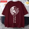 Fire Cartoon Fox Japanese Printed Men Short Sleeve Harajuku Casual Cotton Tee Clothing Oversize All-math Mans Cotton T-Shirts