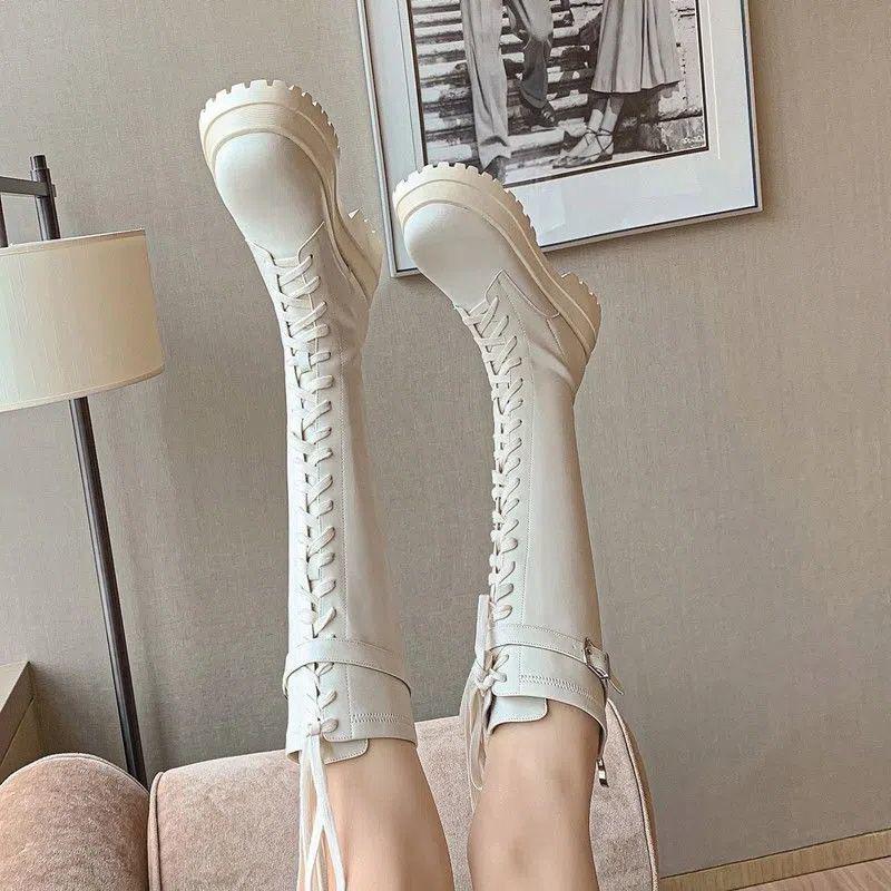 Fashion Long boots for women in summer 2025 autumn new style white thick soled long boots with thick legs and high straps
