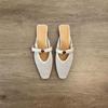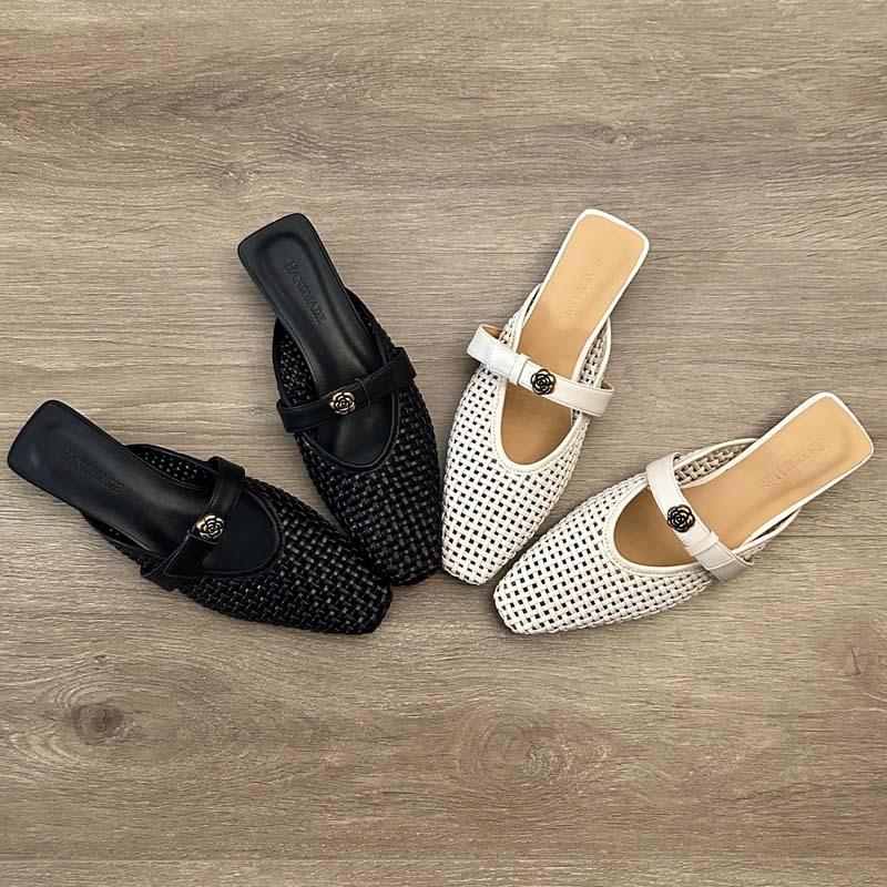 Fashion Hollow Woven Small Square Toe Flat Mules Shoes for Women Summer Slip on Casual and Breathable Roman Style Outdoor Half Slippers