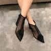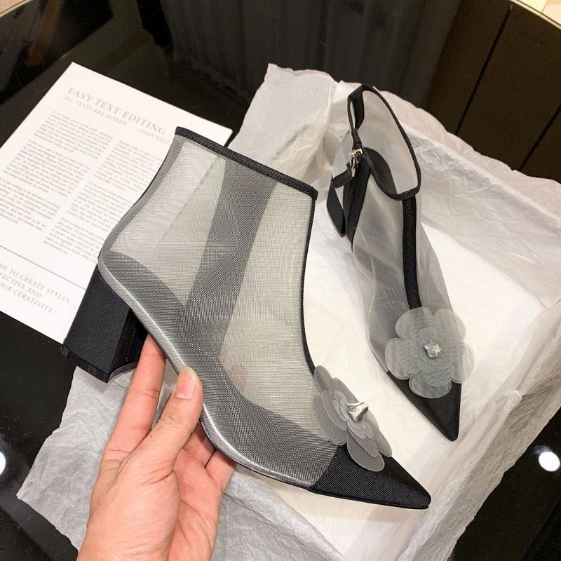 Fashion FHC Women Camellia Flower Mesh Boots,Short Botas,Summer Shoes,Pointed Toe,Side Zip,Europea Style,33-40,Grey,Black,Pink,Dropship
