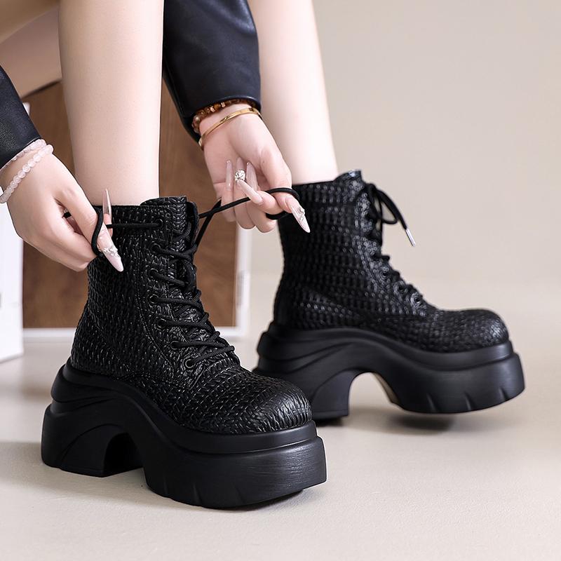 Fashion High Heels Women's Platform Ankle Boots Designer Weave Shoes Classical Lace Up Pumps Winter Shoes 2025 Elegant Boots De Mujer