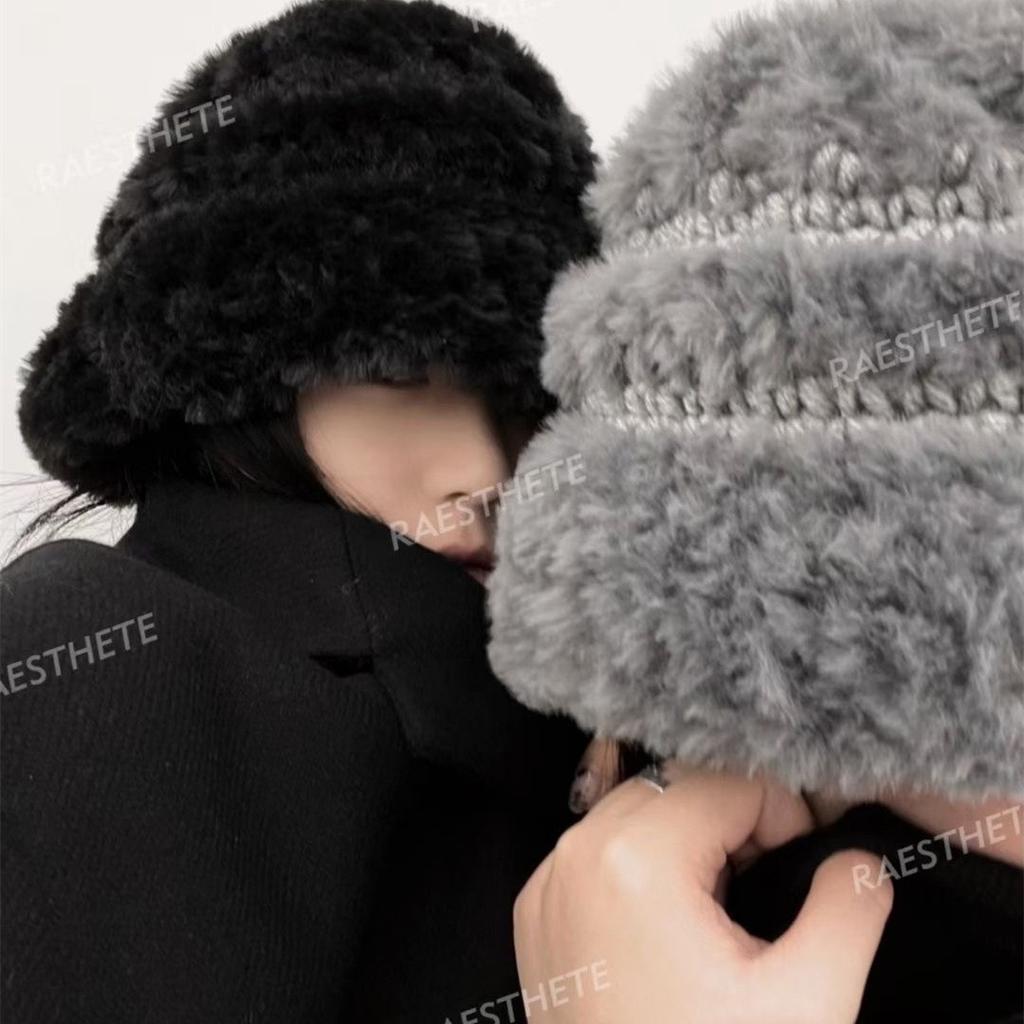 Winter Korean Style Designer Thickened Hand Knitted Fur Splicing Fisherman's Hat Warmth Anti Frost Hat Wool Hat