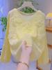 Three-dimensional flower hollow sequin loose knitted sweater top autumn and winter new splicing mesh sweater pullover women