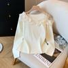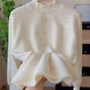 Bead splicing mesh knitted sweater top autumn and winter new loose sweet soft waxy gentle sweater pullover woman
