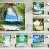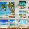 Summer Beach Sea Palm Tree Shower Curtain Tropical Surfboard 3d Waterproof Bathroom Curtain Decoration With Hooks Home Supplies