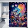 Cartoon Space Astronaut Simple Shower Curtain Bathroom Shower Curtain Easy To Clean And Scrub Polyester Waterproof Light Opaque