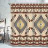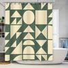 Bathroom Shower Curtain Set with Modern Geometric Print for Home Decor Green Brown Colors, Waterproof Fabric Material, Perfect M