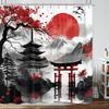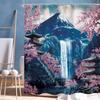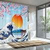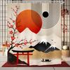 1pc Japanese Retro Shower Curtain - Cherry Blossom & Mountain Design, Red Sun Blue Pink Hues, Polyester , Machine Washable