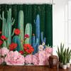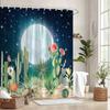 1 Surreal Desert Shower Curtain with Glowing Cacti, Fantasy Neon Plants and Starry Sky Design, Polyester, Vibrant Curtain Design