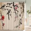 3d Printing Chinese Flower Bird Ink landscape Shower Curtain Bathroom Waterproof Bath Curtain With Hooks Washable Cloth Decor
