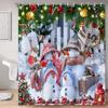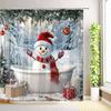 Funny Christmas Snowman Shower Curtains Skiing Winter Forest Color Xmas Ball Gift New Year Bathroom Decor Bath Curtain Set Hooks