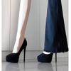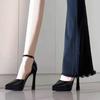 New waterproof table high heels women's thin heels are not tired feet sexy student black suede hollow pointed single shoes women