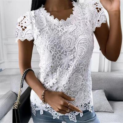 Yaz Kadın T-Shirt Tatil Zarif Dantel Kısa Kollu Üst