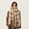 Maillard style new versatile warm thickened fringed plaid imitation cashmere scarf women's autumn and winter