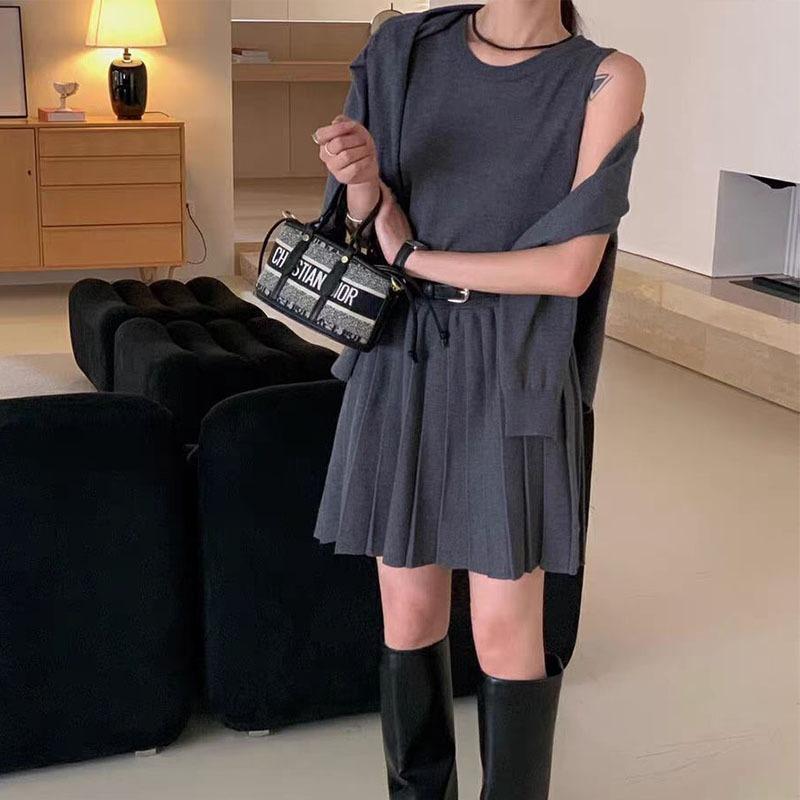 Thirteen rows of sweaters two-piece set autumn and winter new casual waist sleeveless vest skirt knitted cardigan women's suit