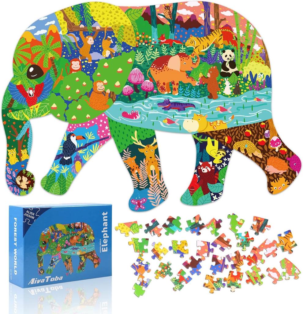 Puzzle Fil Çocuklar, Yapboz 200 Parça Hayvan Bulmacası Oyuncak 3 4 5 6 7 8 9 Yaşındaki Yürümeye Başlayan Çocuklar Erkekler Kızlar için Çocuk Bulmacası Hediyesi