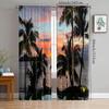 2pcs- Korean-style palm and coconut tree polyester curtains, pole bag curtains 42*84, bedroom, living room, home room decoration