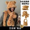 Plush tiger pattern ear hat scarf integrated bucket hat winter cold and warm