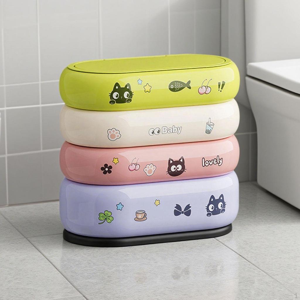 - 【Playful Design】: This unique trash can featuring a cute cat inspired aesthetic. The vibrantly colors add a fun of personality, turning a household essential into a delightful piece of decor for your living room, bedroom, or office