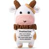 Funny Crochet Emotional Support Cow Doll With Card Desktop Ornament Handmade Knitted Positive Energy Cow Doll Christmas Gifts
