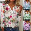 QICED Autumn and Winter Casual Color-blocking Flower Lantern Sleeved Lace-up Chiffon Blouse for Women
