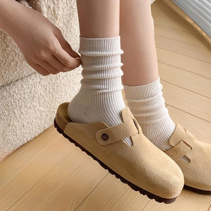 Women's Mid-calf Socks for Autumn and Winter, Boneless, Rolled-up, Pure Cotton Socks, Anti-slip, Breathable, Sweat-absorbing, Odor-proof, Pile Socks