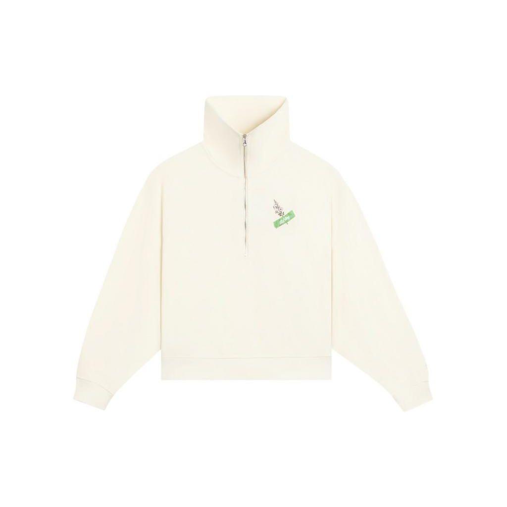 Li Ning FW22 Sports Trend Series Solid Color Logo Embroidered Half-Zip Long Sleeve Sweatshirt Women sweatshirt Beige AWDS916-5