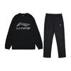 Li Ning Letter Logo Printed Warm Loose Round Neck Pullover Sweatshirt With Cuffed Knit Waist Long Pants Casual Sports Set AYKT415-1+AWDRF44-1