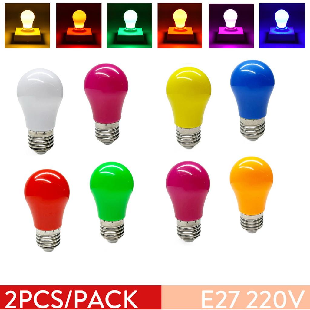2x E27 2w Led Bulbs Rgb Screw-base Globe Bulb Lamps A45 Light Red Blue Green Pink Yellow White Purple 8-light-colors 240v 10w