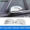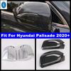 For Hyundai Palisade 2019-2025 Rearview Side Mirror Cover Wing Cap Exterior Door Rear View Case Trim Carbon Fiber Look Silver