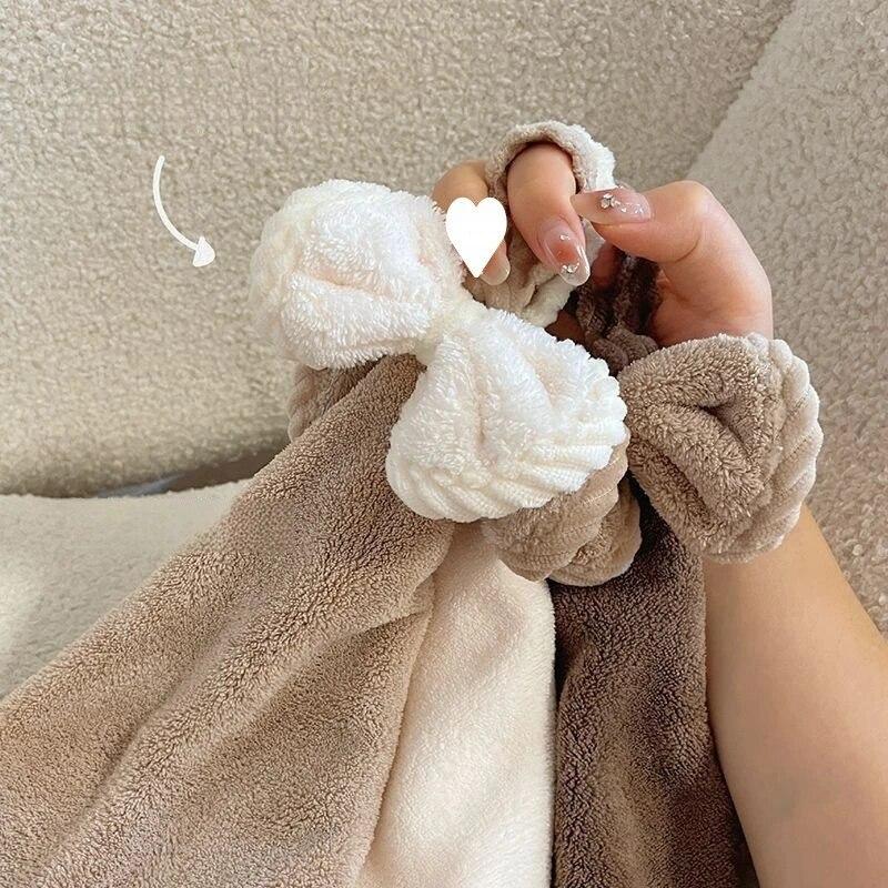 Hand Wiping Cute Bow Hanging Coral Fleece Hand Towel Bathroom Absorbent Small Towel CHILDREN'S Home Quick Drying