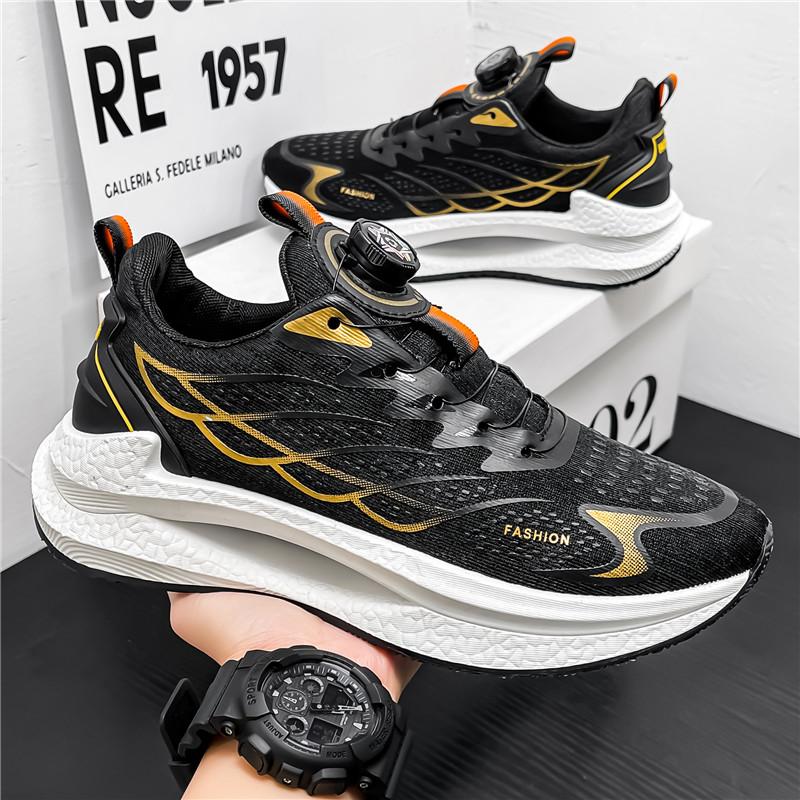 Fashion Black Men Casual Mesh Sneakers New Autumn Student Fashion Running Shoes Twist Buckle Non-slip Breathable Outdoor Soft Sport Shoe