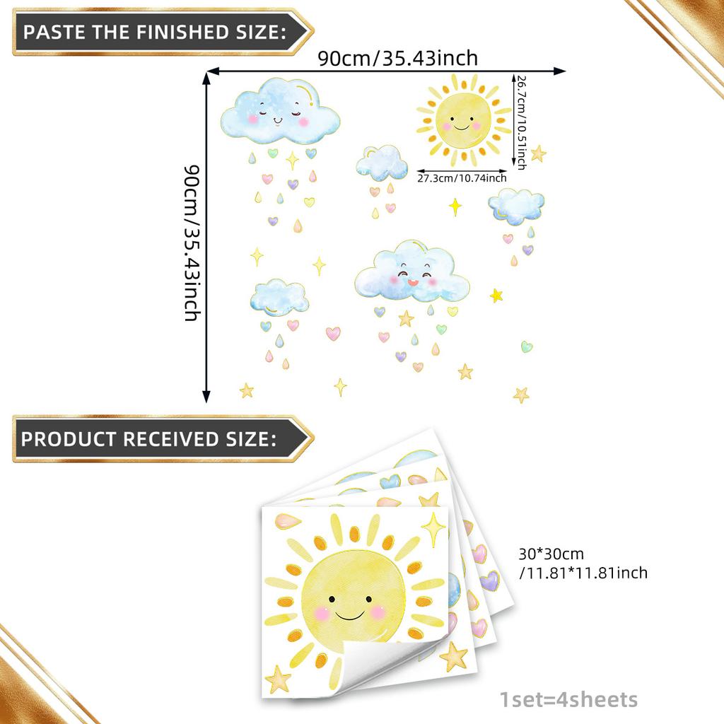 Tj9004 Cute Sun Cloud Love Rain Bronzing Wall Sticker Decoration Living Room Bedroom Background Self-Adhesive Wall Sticker