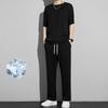Erkek Yaz Modası Bol Büyük Beden Buz İpek Takım Elbise Klasik Yuvarlak Yaka Rahat Düz Renk Yüksek Kaliteli İki Parçalı Takım