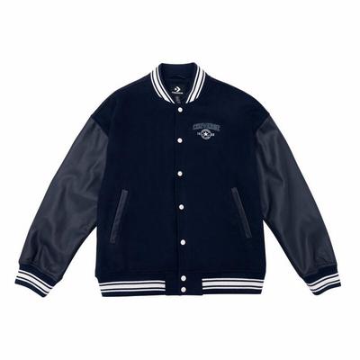 Anta Rahat Günlük Basit Harf Baskılı Bol Beyzbol Ceketi Erkek Ceketleri Astronot Mavisi 152518707S-1