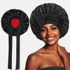Sınır Ötesi Kadın Saten İpek Fiyonklu Uyku Bonesi - Saç Bakımı için Ekstra Büyük