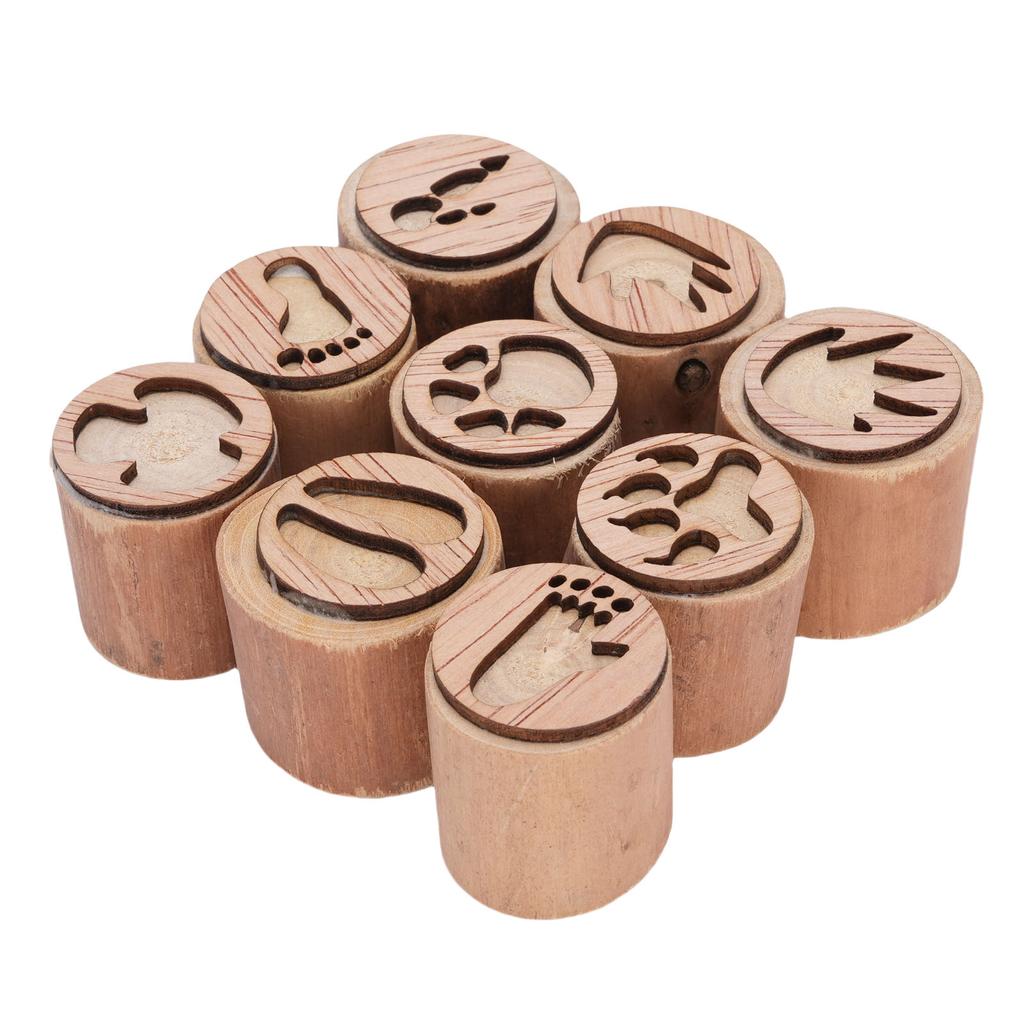 9Pcs Animal Footprint Stamps Wooden Wild Animal Tracks Stamp Set Mini Handmade for Crafting Decorative Projects