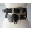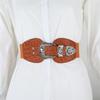 Women's PU Belt Retro Carved Alloy Buckle Double-Row Belt Wide Belt Versatile Jeans Clothing Accessories