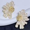 1 Pair of Elegant Daisy Earrings, White Flowers with A Gold Center, Shiny Effect Design, Preferred for Daily Wear