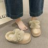 Fashion Metal Buckle Furry Mules Slippers Women 2025 Winter Eva Fluffy Fur Indoor Slippers Comfort Thick Bottom Non Slip Home Slides